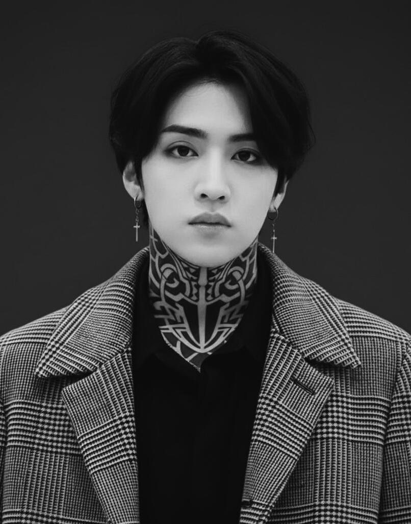 JUNG WOOSEOK as face claim. Solely for roleplaying written by #различный. All illustrations are AI-generated and non-commercial. Kutaragi Dio’s tattoo features a tribal pattern that intertwines root-like lines with mystical Onmyōdō patterns.
